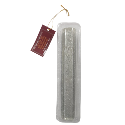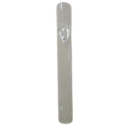 מזוזה מהודרת מפולימר 15 ס"מ עיטור נצצים כסף אלגנטי