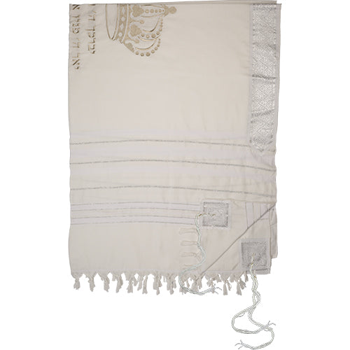 טלית "מופת" חתנים גודל 60 - 185x140 ס"מ פסים כסף ריקמה כתר