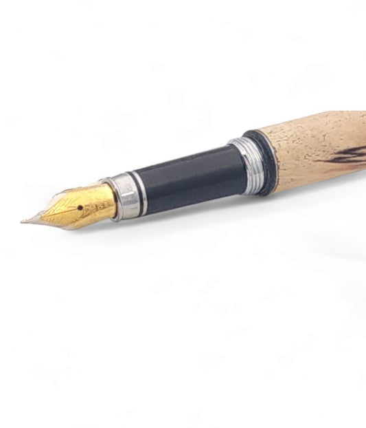 עט נובע קלאסי בעבודת יד - גוף עץ טבעי בגוון בהיר עם נגיעות כרום