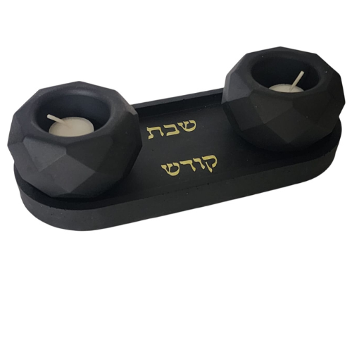 פמוטי שבת שחורים בעיצוב גיאומטרי ייחודי על מגש תואם - בעבודת יד