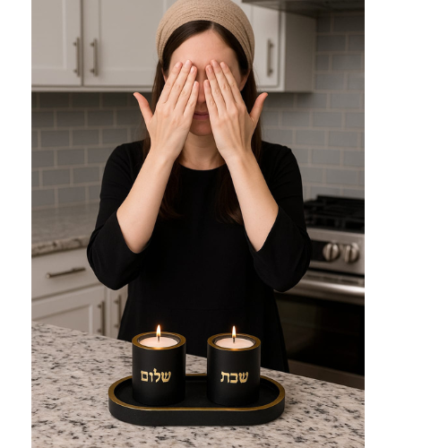 פמוטי זכוכית להדלקת נרות שבת הכולל ברכת הדלקת נרות