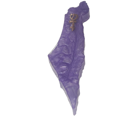 יצירה ייחודית בעבודת יד: בית מזוזה בצורת מפת ארץ ישראל בגוון סגול פנינה עם נוכחות עמוקה ומרשימה. אות "ש" מוזהבת בחלק העליון מעניקה מראה מסורתי לצד עיצוב אמנותי מודרני. בחירה מושלמת למי שמחובר למסורת ולארץ.
