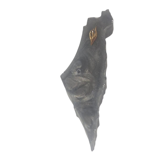 בית מזוזה בעבודת יד בעיצוב מפת ארץ ישראל בצבע שחור מטאלי עם דוגמת שיש ואות "ש" עדינה בזהב. מזוזה עם נוכחות דרמטית שמשדרת חיבור עמוק למורשת היהודית ולנוף המקומי - עיצוב ישראלי אותנטי לבית מיוחד.
